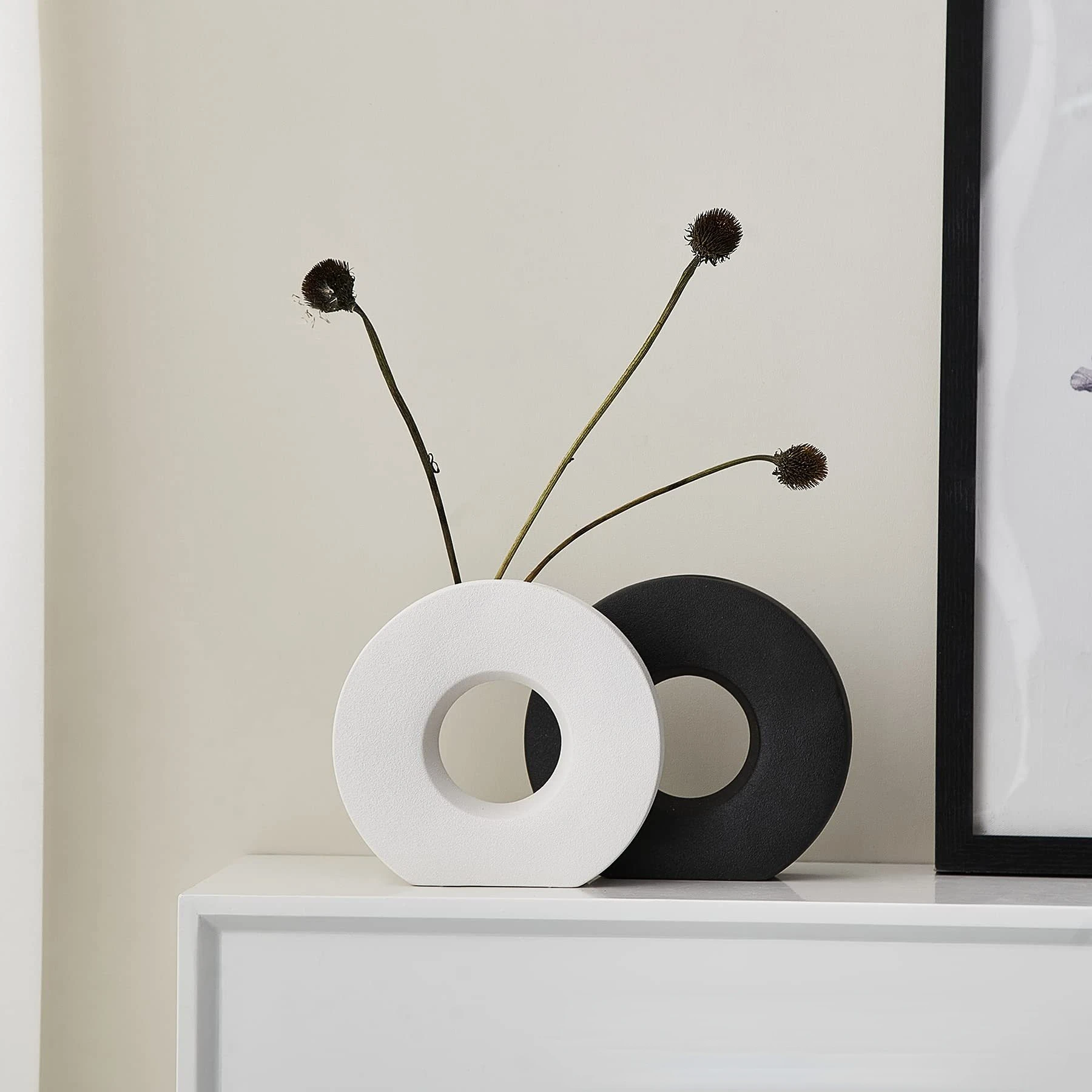 Elevate your space! 🌟 What it is - This exquisite Nordic ceramic donut vase combines premium craftsmanship with a modern design. Made from high-quality ceramic, it features a textured matte finish and a unique round shape with holes, making it the perfect decorative centerpiece for your living room or any corner of your home. 🌼 Why you need it: - Adds a touch of luxury to your decor with its sleek and modern design. - Versatile in use, perfect for displaying flowers or as a standalone art piece. - Ideal for various styles: bohemian, Scandinavian, or minimalist aesthetics. - Makes a thoughtful gift for special occasions like Thanksgiving, Christmas, or weddings. ❤️ Why you’ll love it: - High-quality ceramic ensures durability and longevity. - The eye-catching design and texture create an interesting focal point in any room. - Lightweight and portable for easy rearranging and styling throughout your home. 🏡 How to use it: Place the vase in a prominent area, fill it with your favorite flowers or leave it empty to showcase its unique shape. This vase is perfect for both casual and formal settings. ✅ Satisfaction Guaranteed: Enhance your home decor with this exclusive luxury vase today, and experience the charm of Nordic design in your space! Limited stock available!
